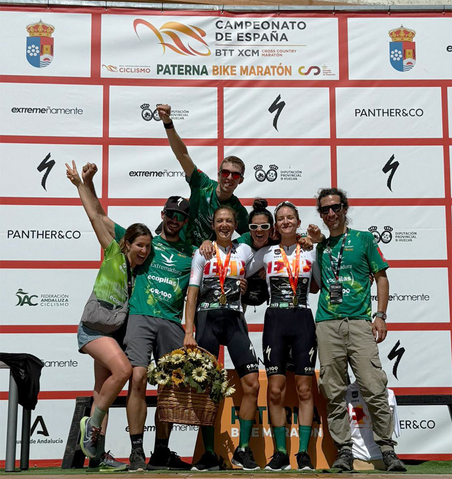 Jornada histórica de las que permanecerá para siempre en la retina de los integrantes del Extremadura-Ecopilas UCI MTB, que vivieron de cerca en Paterna del Campo dos nuevos títulos conseguidos en el Campeonato de España de maratón BTT 2026 élite con Natalia Fischer y en sub23 con María Reyes Murillo, sin olvidarnos de un gran Raúl Rodríguez, quinto.