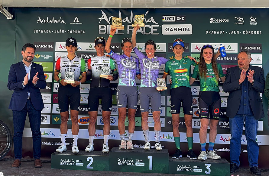 La pareja de corredoras formada por Natalia Fischer Eguskiza y Claudia Peretti (Extremadura-Ecopilas) han comenzado en Granada su participación en la XV Andalucía Bike Race by Garmin (SHC) con una contrarreloj de 17 kilómetros donde han conseguido subir al podio como terceras clasificadas.