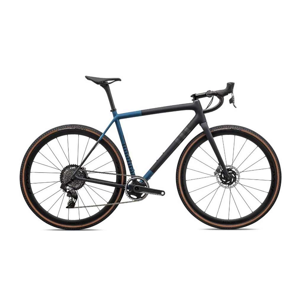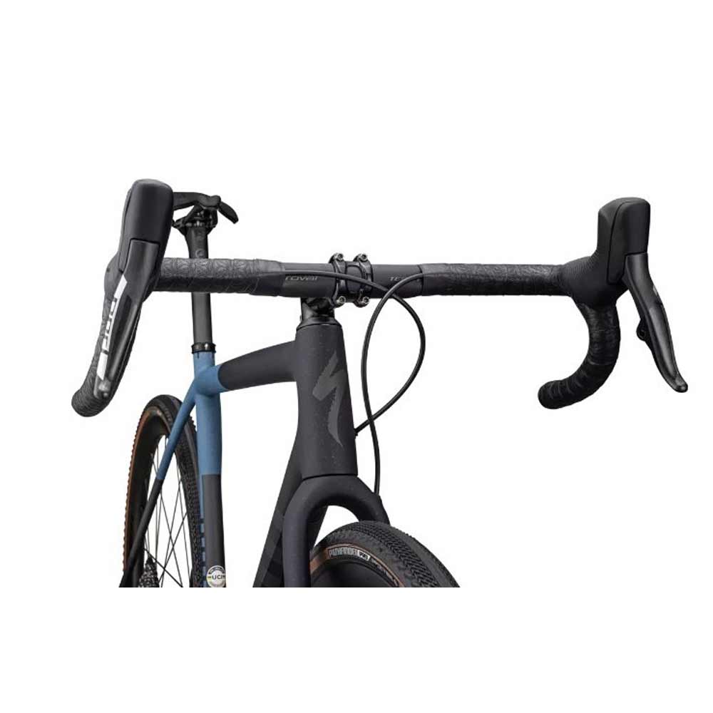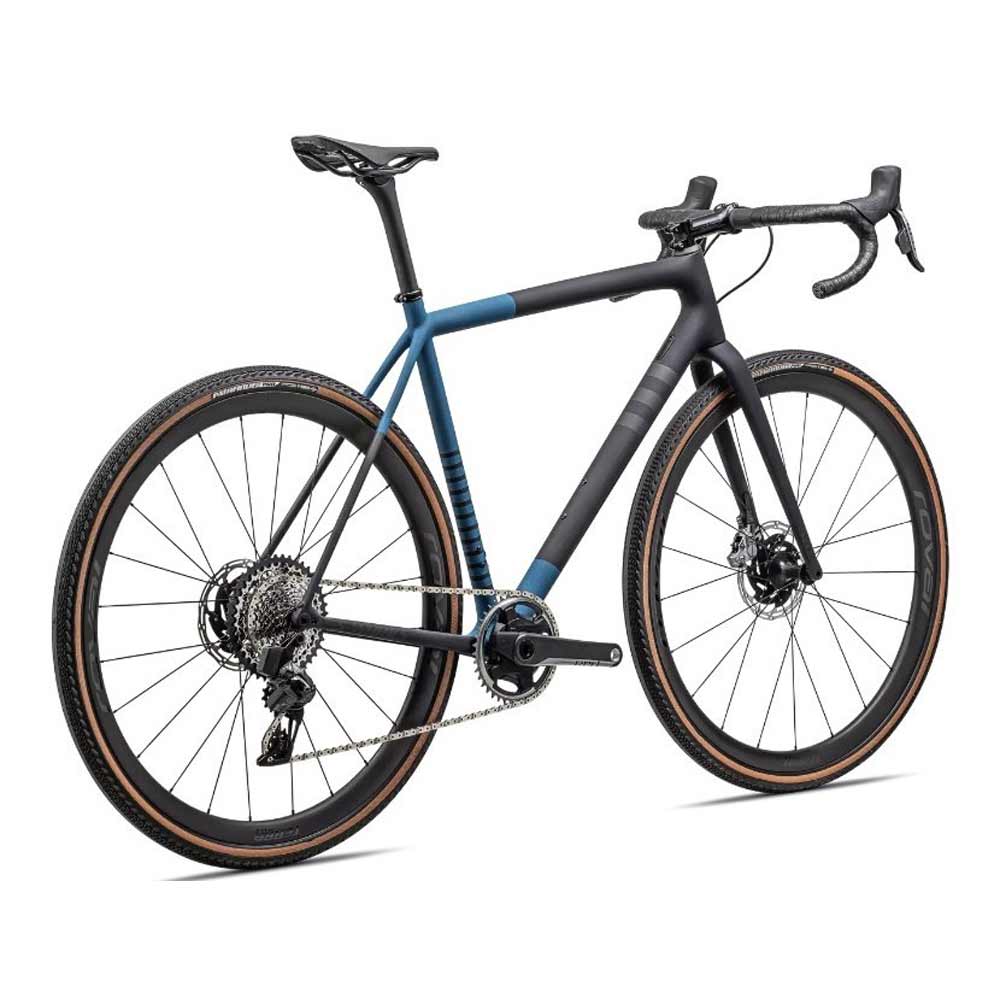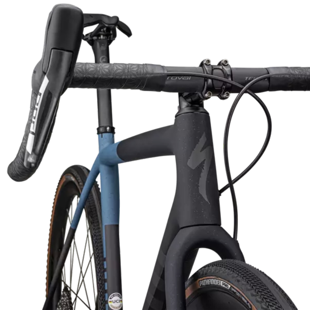 Este S-Works Crux viene equipado con el grupo de discos hidráulicos RED eTap AXS de SRAM, ruedas Roval Terra CLX Disc ligeras y duraderas y neumáticos Pathfinder Pro de 700 x 38 mm 2Bliss Ready que se enganchan en terrenos difíciles.