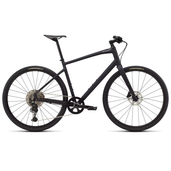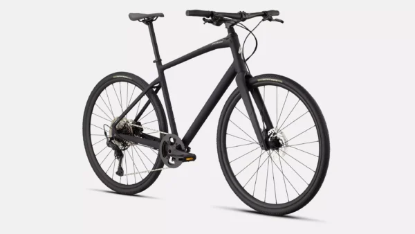 Cuadro: Specialized A1 SL Premium Aluminum, geometría Fitness, tubos conificados (butted), guiado interno de cables, freno de disco con montaje plano (flat-mount), cierre rápido (quick-release), soportes Plug + Play para portabultos y guardabarros - Suspensión