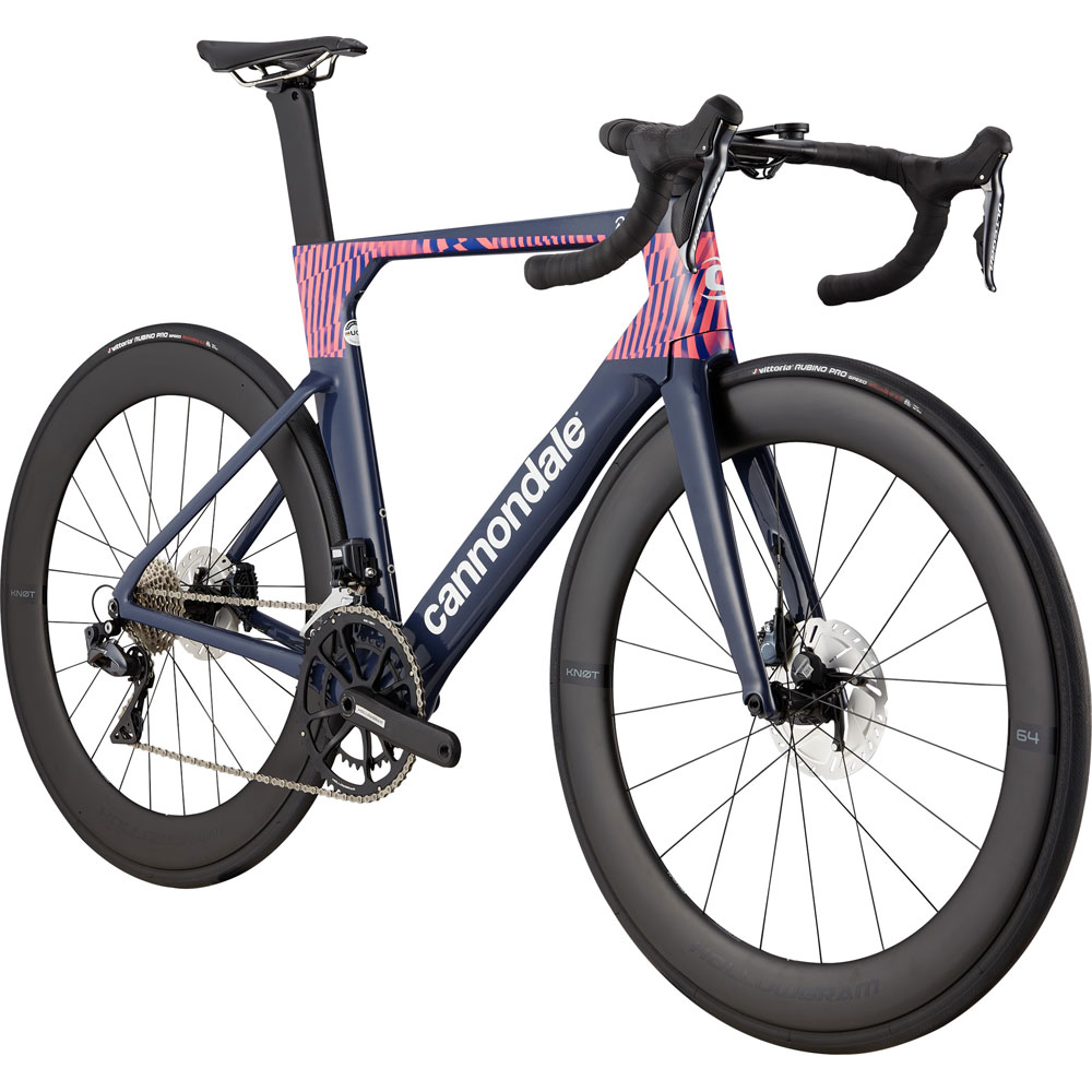 • Quadro de carbono Hi-MOD, roteamento de cabos integrado com quadro de distribuição, SAVE, PF30a, disco de montagem plana, eixo thru de liberação rápida 12×142 • Forquilha BallisTec Hi-MOD Carbon, tubo de cabeça 1-1/8″ – 1-1/4″, eixo thru de liberação rápida de 12x100mm, disco de montagem plana, deslocamento de 55mm (47-51 cm) de 45 mm (54-62 cm) • Jantes HollowGram 64 KNØT, carbono, 20h dianteiro, 24h traseiro, 64mm de profundidade, 21mm IW, pronto para tubeless • cubos (F) HollowGram KNØT, rolamento selado 12×100 centerlock / (R) HollowGram KNØT, 12×142 centerlock com DT Swiss 350 internos • SpokesHollowGram, 2.0 / 1.8 / 2.0, subida em linha reta • Pneus Vittoria Rubino Pro Speed, 700 x 25c • Pedais Não incluídos • CrankHollowGram, BB30a, OPI SpideRing, 52/36 • Cannondale Alloy PressFit30 suporte inferior • Corrente Shimano HG701, 11 velocidades • Rodas dentadas traseiras Shimano Ultegra, 11-30, 11 velocidades • Shimano Ultegra Di2 derailleur dianteiro, soldado • Shimano Ultegra Di2 derailleur traseiro • Shimano Ultegra Di2 shifters, 11 velocidades • HollowGram KNØT SystemBar guiador, carbono, 8 graus.