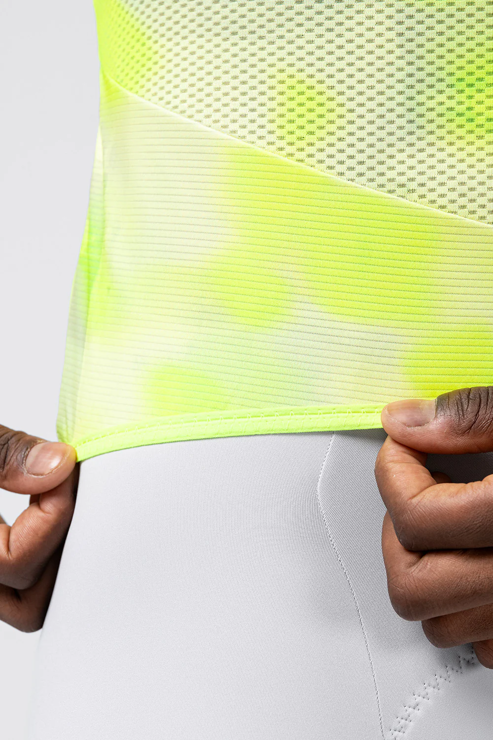 - El tejido de rejilla ultraligero proporciona una excelente transpirabilidad, gestionando de forma eficaz el sudor y favoreciendo la regulación térmica incluso en condiciones de calor y humedad extremas. Cada detalle ha sido optimizado: las mangas prescinden ahora de cintas terminales para un acabado más limpio y actual, mientras que el nuevo cuello, más abierto y minimalista, mejora la ventilación en momentos de máxima intensidad.